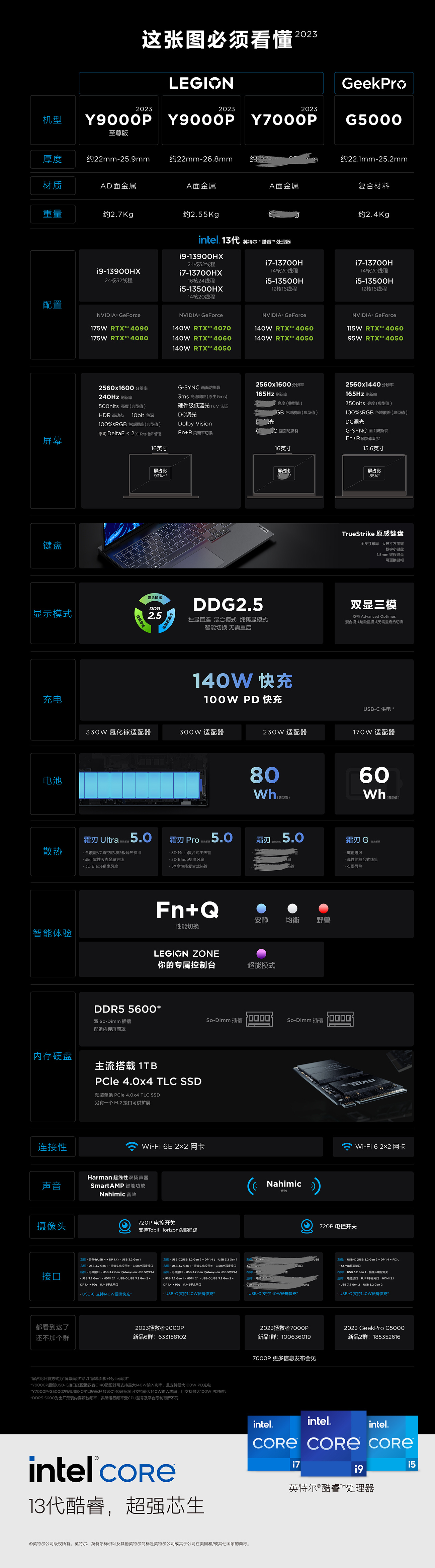 拯救者2023新品来了,#拯救者9000P专业电竞本##拯救者7000P全民电竞本##G5000高性能电竞本#全部搭载13代酷睿处理器,超强芯生,40系显卡啥的更是标配了,不过Y7000P 2023的部分配置没有透露,感觉还会有反转,现在就等个惊喜价了,希望这次备货能更足点,[doge]我要给办公室的新同事冲个首发。