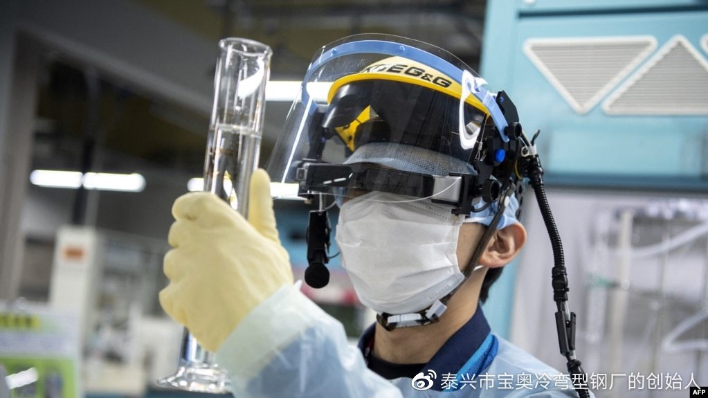 2022年3月5日,在日本大隈,东京电力公司福岛第一核电站的一名员工对污水样本进行氚测量。