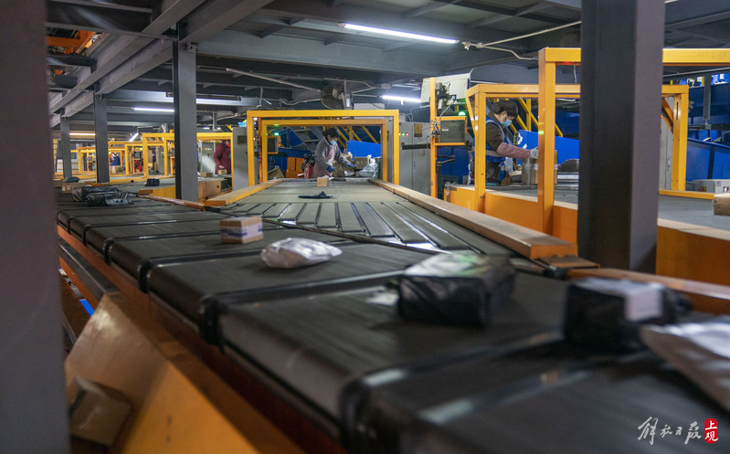 现场一个个大小不一的邮件,经过分拣机和工作人员的手,井然有序地流向各自的目的地。