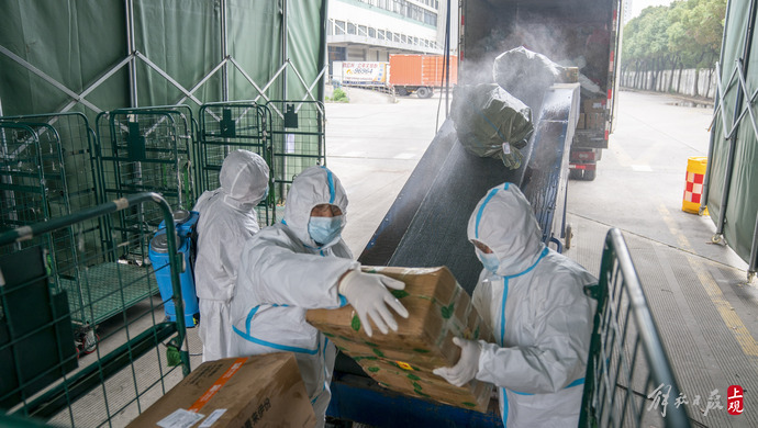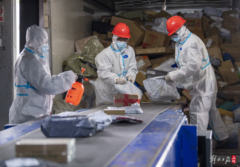 据上海邮区中心工作人员介绍,邮区中心共有员工2228人,因近期疫情防控管理,隔离封闭员工740人左右,占比达33%。为补充快件处理能力,党员机关干部在做好防疫措施的前提下积极投身一线,主动驻守邮区中心。