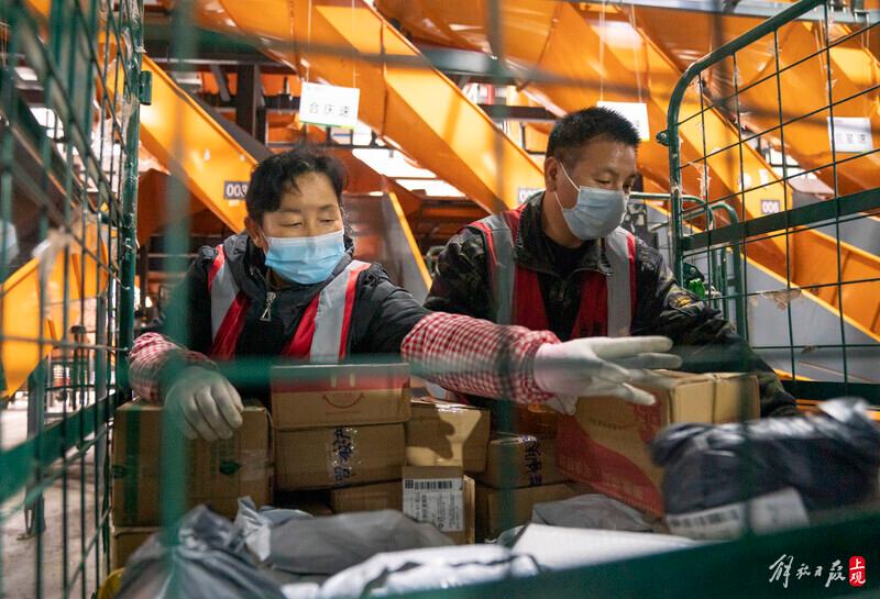 为补充快件处理能力,党员机关干部投身一线。