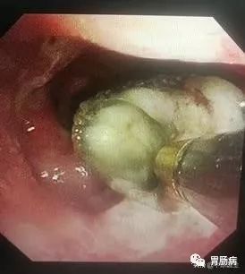 粘膜水肿,肉芽增生,可见远端一异物,肉芽组织包裹,触之出血明显,大量脓性分泌物溢出。